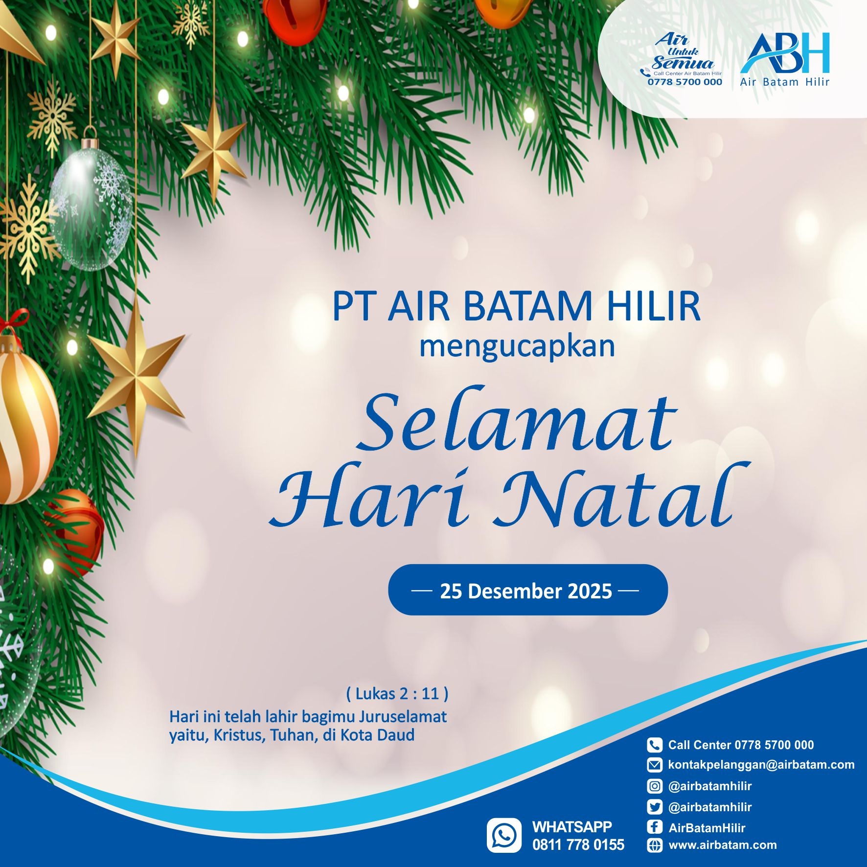 Jajaran Direksi dan Manajemen Air Batam Hilir mengucapkan : "Selamat Hari Raya Natal” 25 Desember 2025