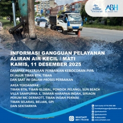 Selama pekerjaan ini, akan berdampak pada gangguan pelayanan suplai air minum berupa air kecil dan air terhenti untuk sementara waktu.