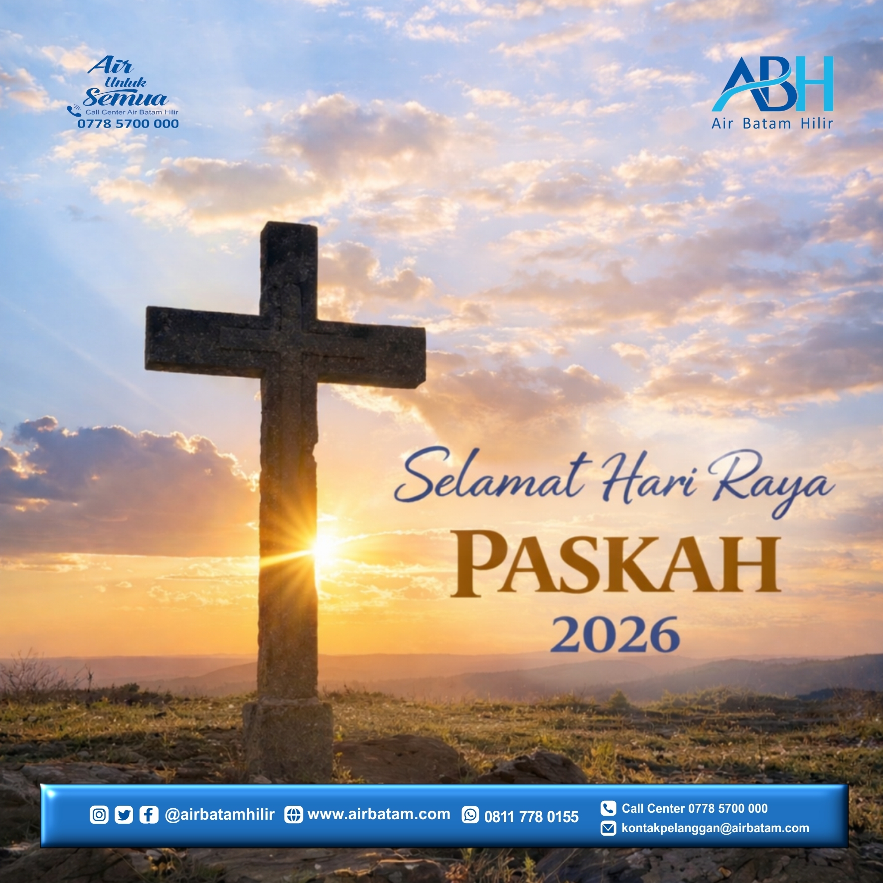 Segenap Direksi dan Manajemen PT Air Batam Hilir mengucapkan Selamat Hari Raya Paskah 2026.