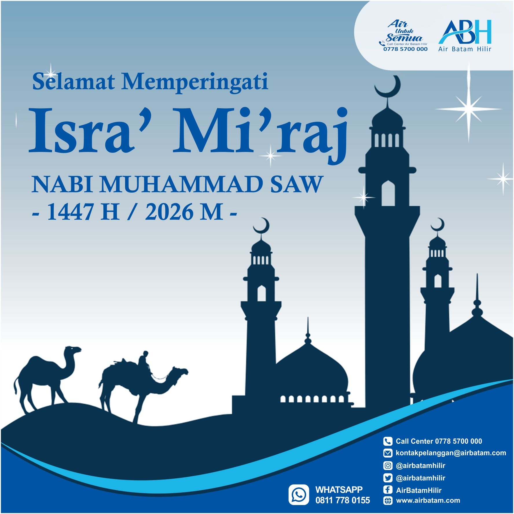 Pelanggan Air Batam Hilir dan Seluruh Umat Muslim Yang Dirahmati Allah SWT, Direksi & Manajemen Air Batam Hilir mengucapkan : Selamat Memperingati Isra’ Mi’raj Nabi Muhammad SAW 27 Rajab 1447 H / 16 Januari 2026 M
