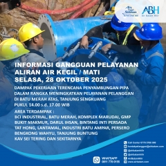 Air Batam Hilir menginformasikan adanya pekerjaan maintenance di Instalasi Pengolahan Air Muka Kuning.