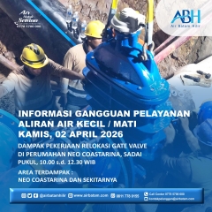 Air Batam Hilir menginformasikan bahwa pekerjaan perbaikan kebocoran pipa DN 500mm di Depan Symphony Land, Nongsa telah selesai dilakukan.
