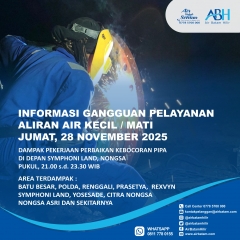 Selama pekerjaan ini, akan berdampak pada gangguan pelayanan suplai air minum berupa air kecil dan air terhenti untuk sementara waktu.