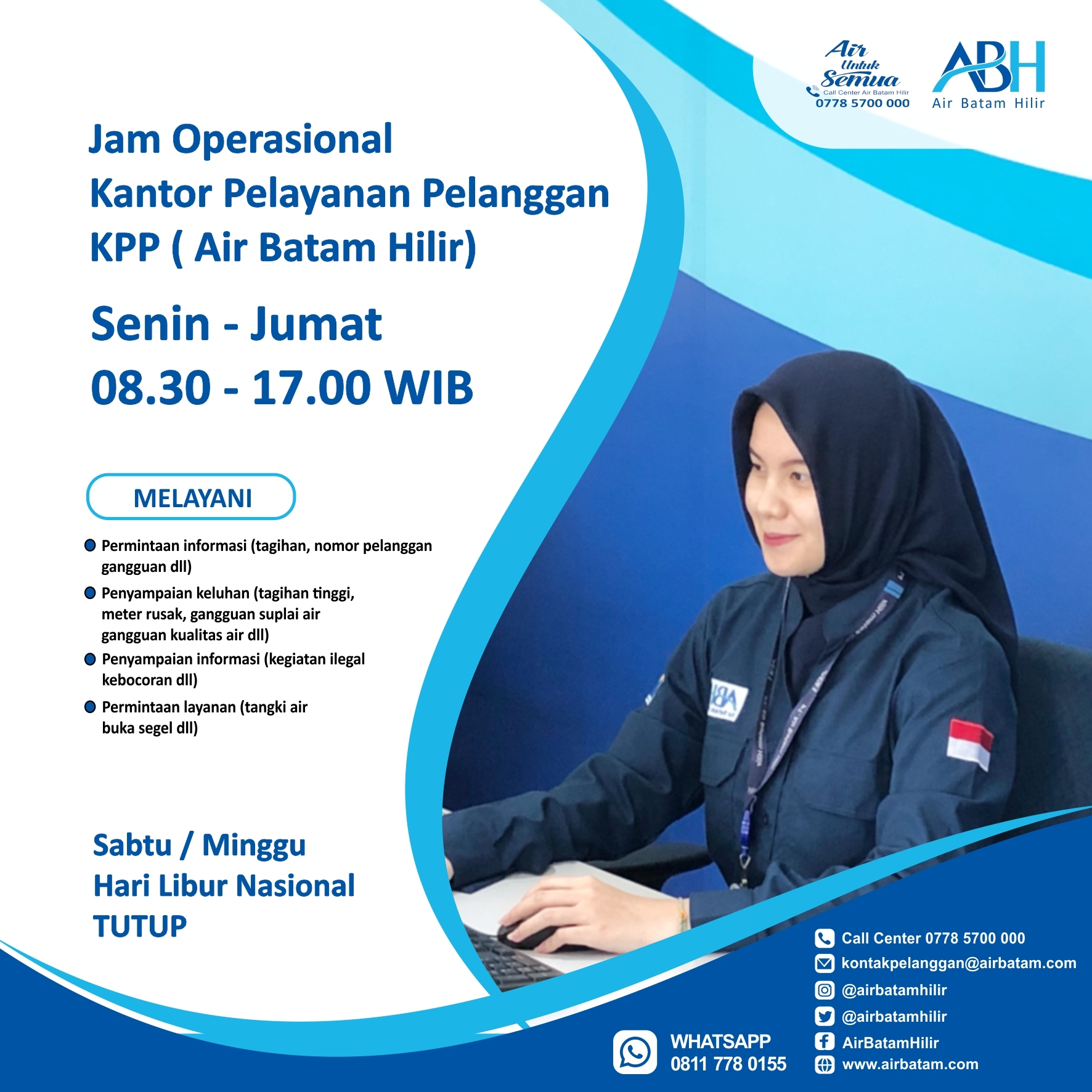 Sebagai komitmen PT Air Batam Hilir untuk mempermudah pelanggan mengakses informasi, menyampaikan keluhan dan mengajukan permohonan, saat ini pelanggan dapat menyampaikan secara langsung melalui Kantor Pelayanan Pelanggan yang berada di HO Batam Center, Bengkong & Batu Aji.
