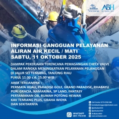 Pelanggan Air Batam Hilir, Air Batam Hilir menginformasikan, pelaksanaan pekerjaan perbaikan kebocoran Pipa Jalur Buana Vista – Bandara dan saat ini dalam proses perbaikan. Selama pekerjaan ini, akan berdampak pada gangguan pelayanan suplai air minum berupa air kecil dan air terhenti untuk s